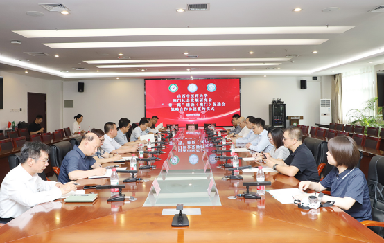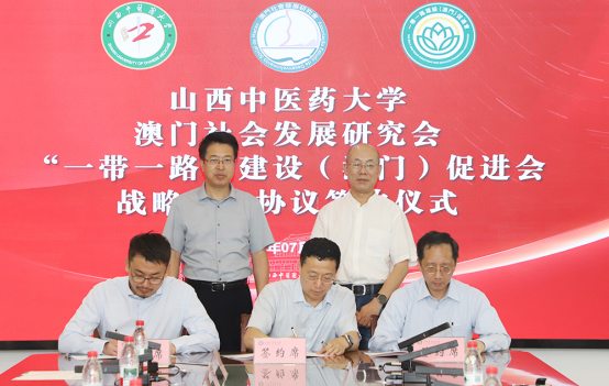 山西省政协港澳台侨和外事委员会主任张健、澳门社会发展研究会会长陈炳强、“一带一路”建设(澳门)促进会理事长王炜骐,党委书记李华荣等出席签约仪式。党委副书记、校长王宏伟主持仪式。学校办公室、国际交流合作处、中药与食品工程学院、第二临床学院、研究生学院、实验管理中心等相关部门负责人参加。
