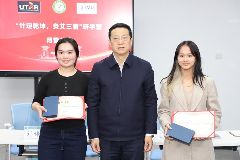 10月27日,由山西中医药大学、马来西亚拉曼大学和马来西亚国际医科大学三校联合举办的“针定乾坤,灸艾三晋”中马学生研学营在我校学生活动中心举行闭营仪式。校党委副书记、校长王宏伟,马来西亚拉曼大学康泰亚医学院中医系主任刘锦辉,国际医科大学中医系资源与宣传部部长陈苇善,我校国际交流合作处处长赵雪丽及三校研学营全体营员参加闭营仪式。